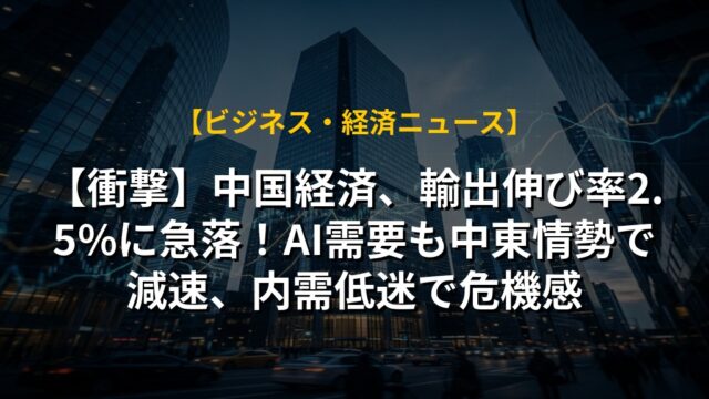 【衝撃】中国経済、輸出伸び率2.5%に急落!AI需要も中東情勢で減速、内需低迷で危機感