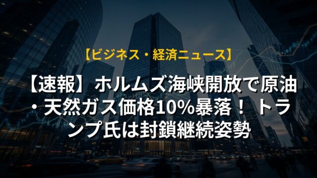【速報】ホルムズ海峡開放で原油・天然ガス価格10%暴落! トランプ氏は封鎖継続姿勢