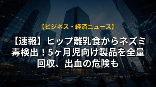 【速報】ヒップ離乳食からネズミ毒検出!5ヶ月児向け製品を全量回収、出血の危険も