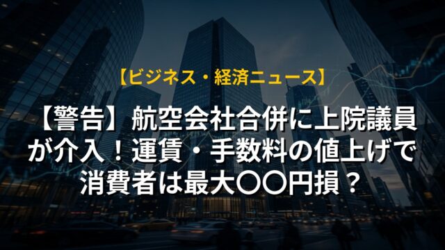 【警告】航空会社合併に上院議員が介入!運賃・手数料の値上げで消費者は最大〇〇円損?