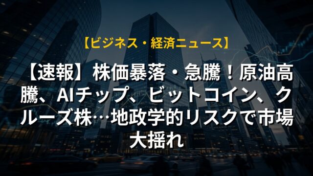 【速報】株価暴落・急騰!原油高騰、AIチップ、ビットコイン、クルーズ株…地政学的リスクで市場大揺れ