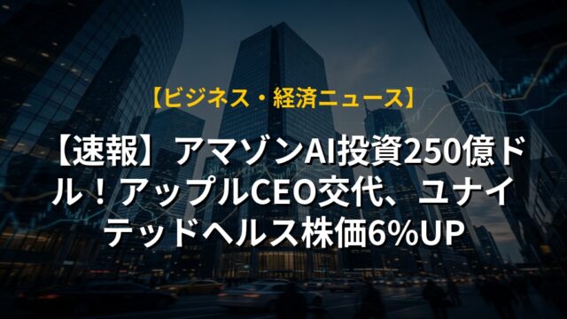 【速報】アマゾンAI投資250億ドル!アップルCEO交代、ユナイテッドヘルス株価6%UP