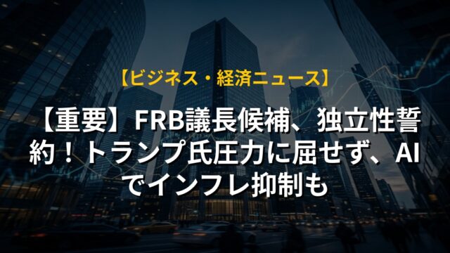【重要】FRB議長候補、独立性誓約!トランプ氏圧力に屈せず、AIでインフレ抑制も