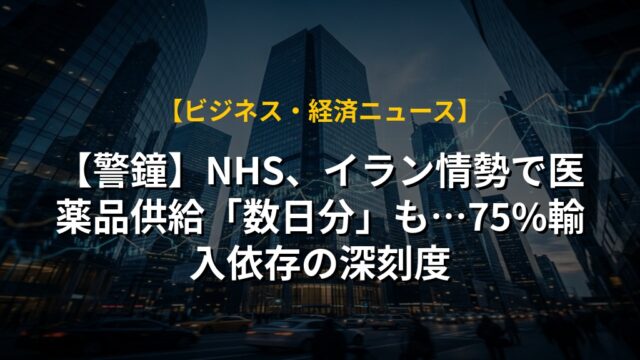 【警鐘】NHS、イラン情勢で医薬品供給「数日分」も…75%輸入依存の深刻度