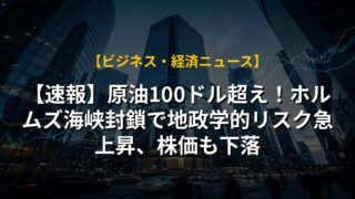 【速報】原油100ドル超え!ホルムズ海峡封鎖で地政学的リスク急上昇、株価も下落