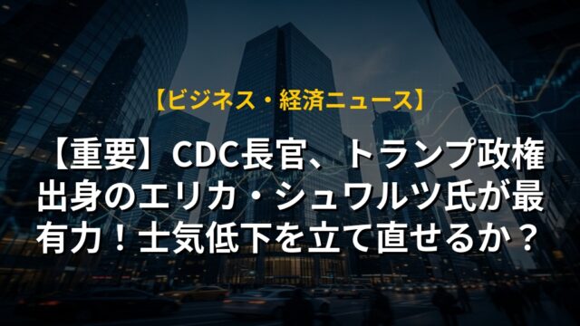 【重要】CDC長官、トランプ政権出身のエリカ・シュワルツ氏が最有力!士気低下を立て直せるか?