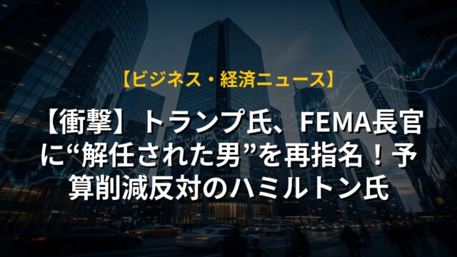 【衝撃】トランプ氏、FEMA長官に“解任された男”を再指名!予算削減反対のハミルトン氏