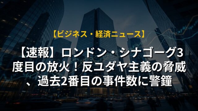 【速報】ロンドン・シナゴーグ3度目の放火!反ユダヤ主義の脅威、過去2番目の事件数に警鐘