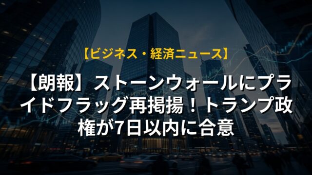 【朗報】ストーンウォールにプライドフラッグ再掲揚!トランプ政権が7日以内に合意