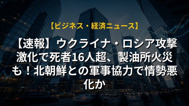 【速報】ウクライナ・ロシア攻撃激化で死者16人超、製油所火災も!北朝鮮との軍事協力で情勢悪化か