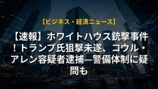 【速報】ホワイトハウス銃撃事件!トランプ氏狙撃未遂、コウル・アレン容疑者逮捕—警備体制に疑問も