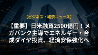 【重要】日米融資2500億円!メガバンク主導でエネルギー・合成ダイヤ投資、経済安保強化へ