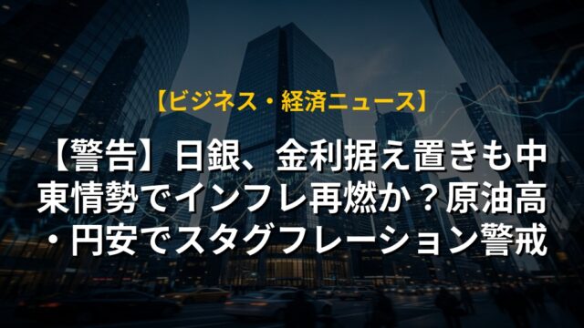 【警告】日銀、金利据え置きも中東情勢でインフレ再燃か?原油高・円安でスタグフレーション警戒