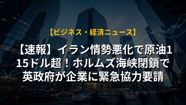 【速報】イラン情勢悪化で原油115ドル超!ホルムズ海峡閉鎖で英政府が企業に緊急協力要請