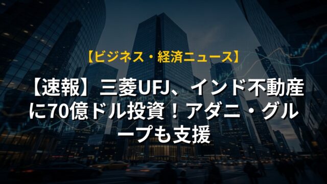 【速報】三菱UFJ、インド不動産に70億ドル投資!アダニ・グループも支援