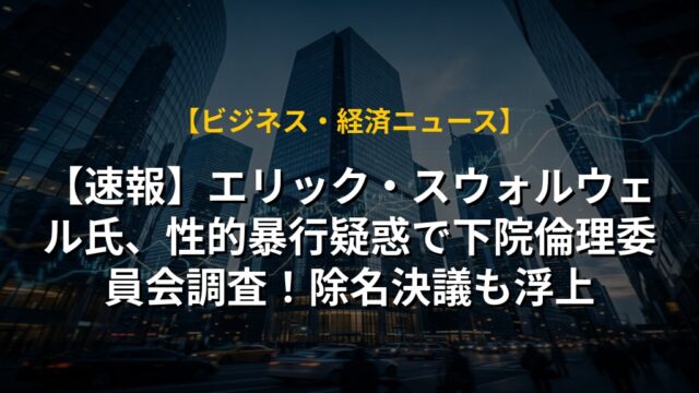 【速報】エリック・スウォルウェル氏、性的暴行疑惑で下院倫理委員会調査!除名決議も浮上