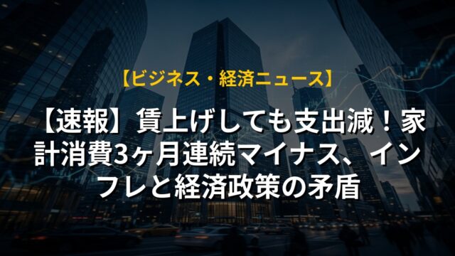 【速報】賃上げしても支出減!家計消費3ヶ月連続マイナス、インフレと経済政策の矛盾