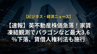 【速報】英不動産株価急落!家賃凍結観測でパラゴンなど最大3.6%下落、賃借人権利法も施行