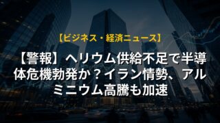【警報】ヘリウム供給不足で半導体危機勃発か?イラン情勢、アルミニウム高騰も加速