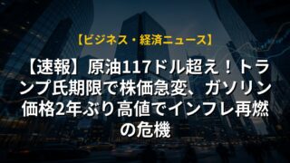 【速報】原油117ドル超え!トランプ氏期限で株価急変、ガソリン価格2年ぶり高値でインフレ再燃の危機