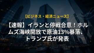 【速報】イランと停戦合意!ホルムズ海峡開放で原油13%暴落、トランプ氏が発表