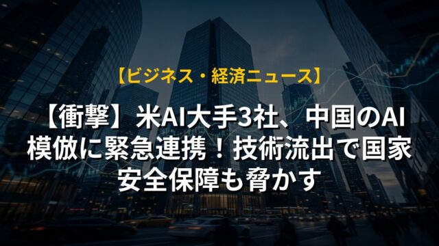 【衝撃】米AI大手3社、中国のAI模倣に緊急連携!技術流出で国家安全保障も脅かす