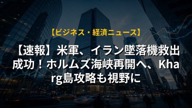 【速報】米軍、イラン墜落機救出成功!ホルムズ海峡再開へ、Kharg島攻略も視野に