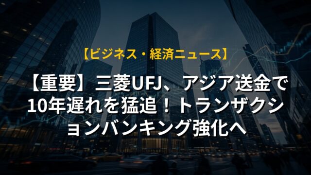 【重要】三菱UFJ、アジア送金で10年遅れを猛追!トランザクションバンキング強化へ