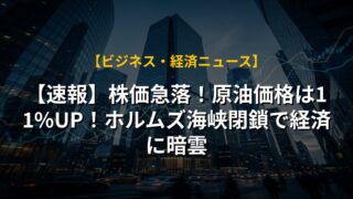【速報】株価急落!原油価格は11%UP!ホルムズ海峡閉鎖で経済に暗雲