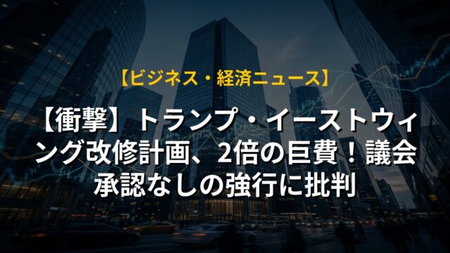 【衝撃】トランプ・イーストウィング改修計画、2倍の巨費!議会承認なしの強行に批判