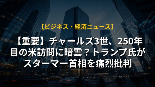 【重要】チャールズ3世、250年目の米訪問に暗雲?トランプ氏がスターマー首相を痛烈批判