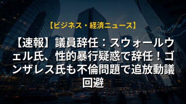 【速報】議員辞任:スウォールウェル氏、性的暴行疑惑で辞任!ゴンザレス氏も不倫問題で追放動議回避