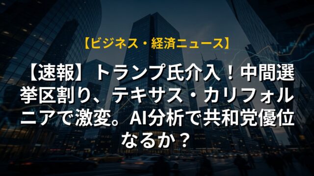 【速報】トランプ氏介入!中間選挙区割り、テキサス・カリフォルニアで激変。AI分析で共和党優位なるか?