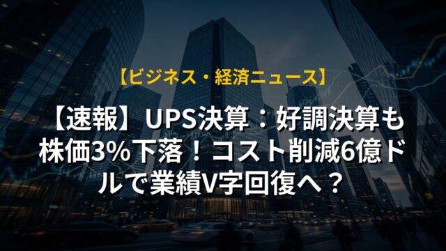 【速報】UPS決算:好調決算も株価3%下落!コスト削減6億ドルで業績V字回復へ?